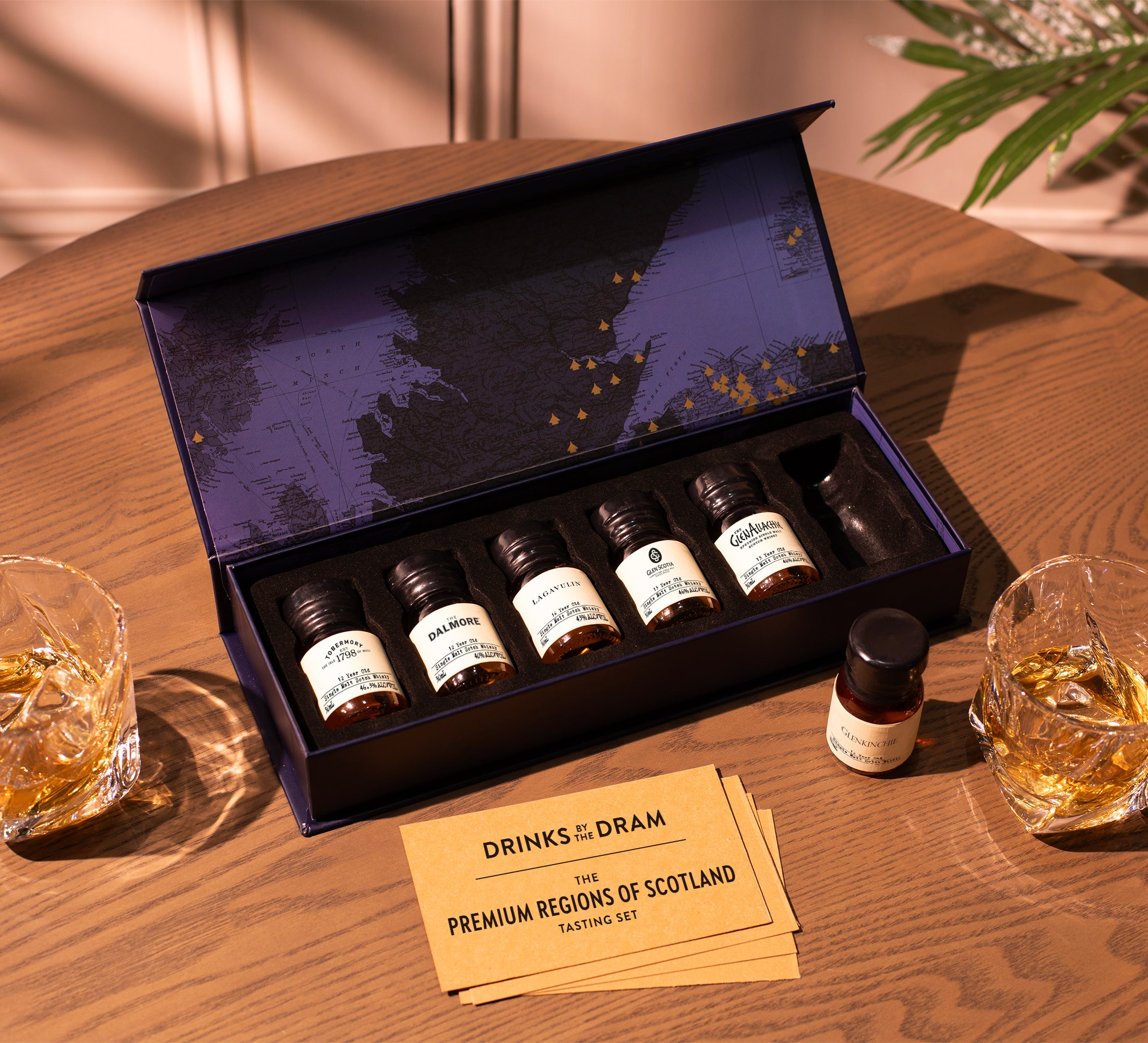 Embark on a tasting journey through the whisky-making regions of Scotland with six wax-sealed 30ml samples, filled with exceptional Scotch from top distilleries and producers in the Highlands, Lowlands, Speyside, Islay, and Campbeltown, plus the Scottish islands.